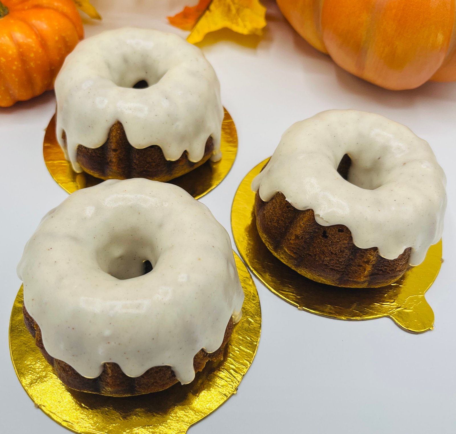 Now baking for a short time only. All the warm flavors of fall, jam packed into a mini bundt cake. Topped with a delicious cinnamon icing. Perfect for your party table. $65/Doz.