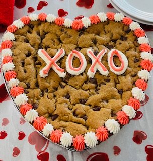 Personalize your heart shaped cookie cake with a special message for your special person. A rich, buttery cookie, packed with chocolate chips, and decorated in buttercream frosting. Now through Valentine’s Day. $50/ea.